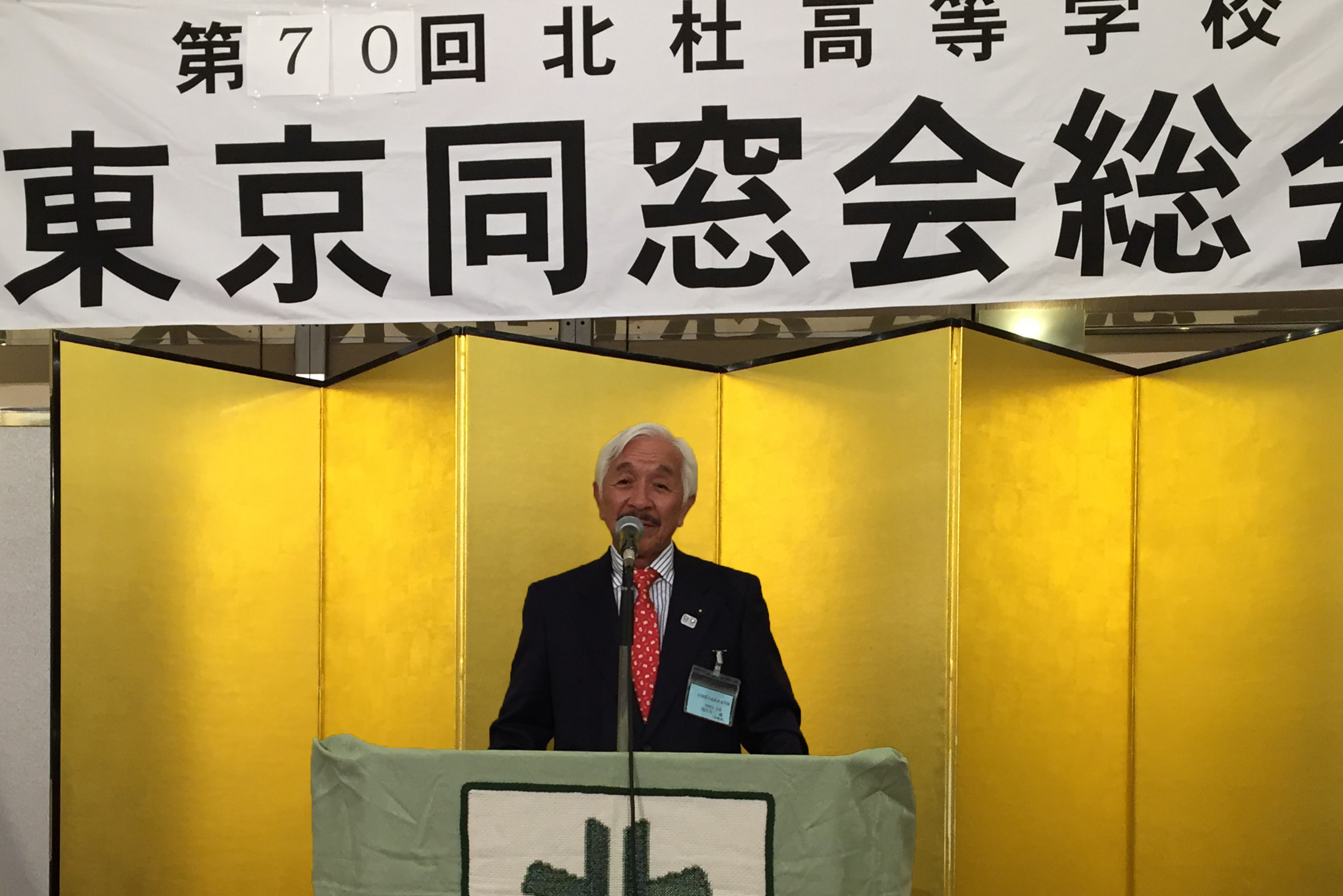 北杜高校同窓会長として70周年を迎えた東京同窓会で祝辞