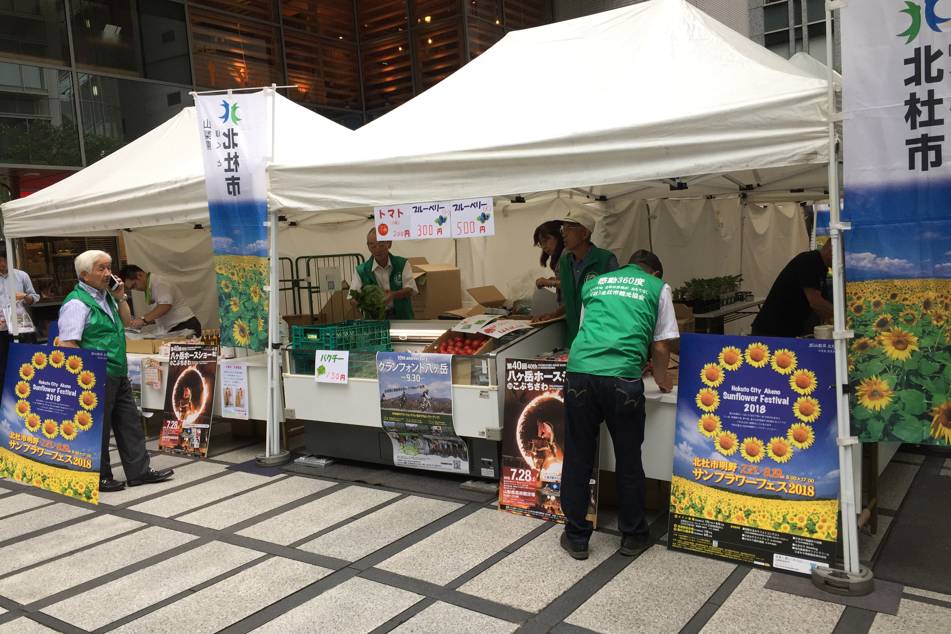 7月12日、13日 東京富士の国やまなし館前で地元朝採り野菜を販売しながらのキャンペーン