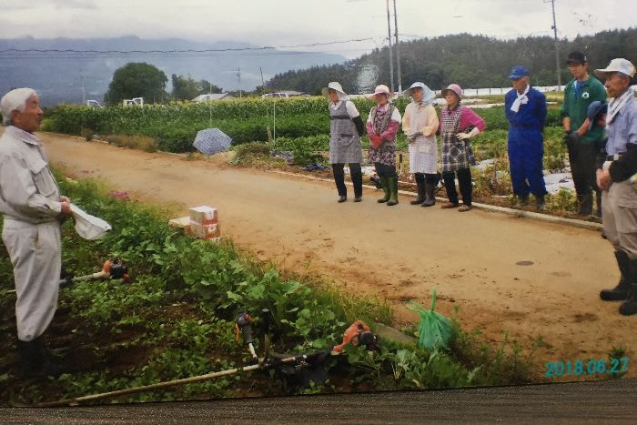 6月27日 第9回菜の花プロジェクト(収穫)小雨の為、小学生は不参加ながら地域や観光協会の方約30名ご参加頂きました