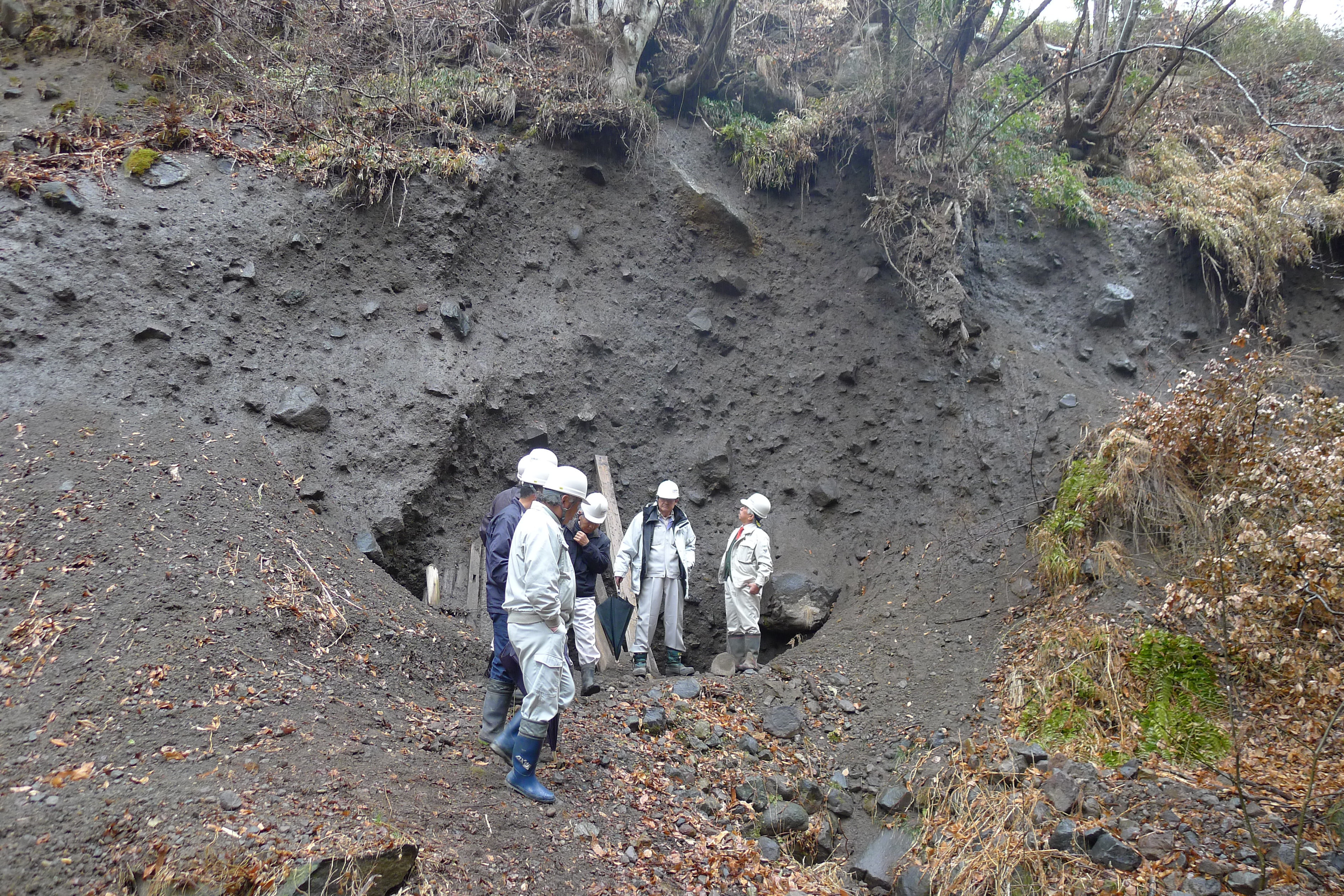 4月26日 須玉町江草地区、土砂災害の現地調査