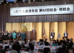 山梨を離れ首都圏でご活躍されている方々で構成される、山梨県人会連合会の第63回総会に出席して参りました。当日は、会員の皆様と親しくお話をさせていただき、皆様が「ふるさと山梨」への深い愛郷の念を持ちながら、それぞれのお立場で山梨を応援されていることを知る貴重な機会となりました。山梨県民はもとより、山梨を離れて暮らしている方々にとりましても、「緑豊かで美しい山梨」を誇りとしていただけることを目指し、これまで以上に尽力していくことを固く決意いたしました。