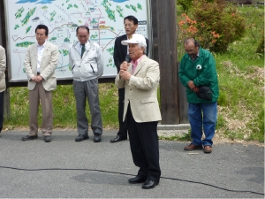 温暖化や色々な影響の中で、つつじはかなり絶滅状態になっております。地元の観光振興会も中心になり、15年位前から植樹してきましたが中々定着させることが出来ず、この6年間は下草刈りを行ってきました。今年は5月28日に念場山財産区、高根観光協会、大泉の観光協会の方のご協力の元行いました。皆様のご協力を得る中で6年間続けてきたことでやっとこのように赤みが見えるようになりました。地域の方々が総力をあげてこの地域を、自然を光り輝くようにするために日々努力をして、皆さんにお見せでできるようにした努力の結果です。本日も70名の方がこの植樹活動に参加して頂けることができ感激しております。
