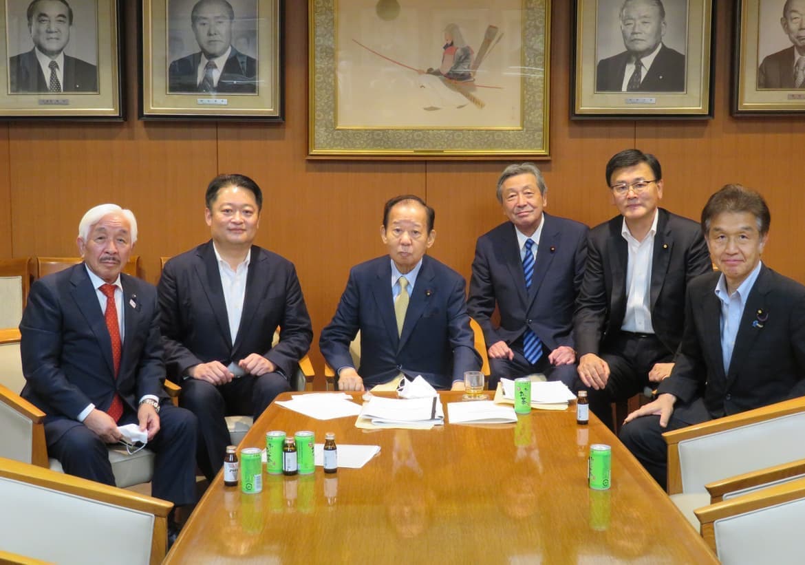 令和3年6月15日・長崎知事、森屋・赤池両議員と自民党本部二階幹事長に国土強靭化の要望活動を行いました。