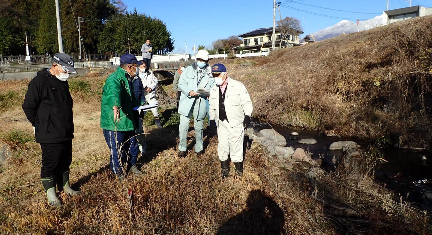 12月9日 高根町五町田地域の皆さんと護岸整備の現地調査を行い、要望をお聞きしました。