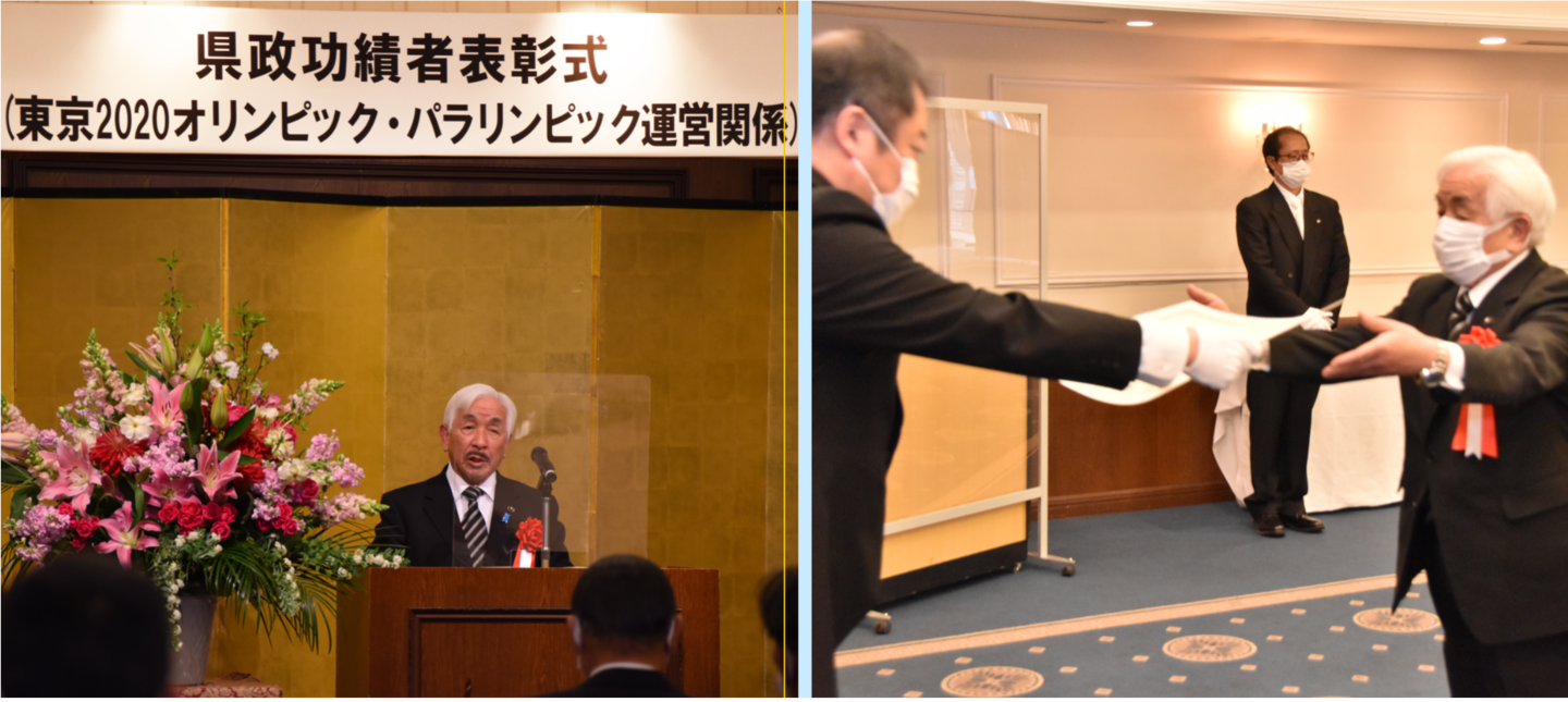 東京オリンピック・パラリンピック運営に際し、28団体1個人に贈られた県政功績者表彰の栄に浴し、受賞者を代表し、ご挨拶申し上げました。