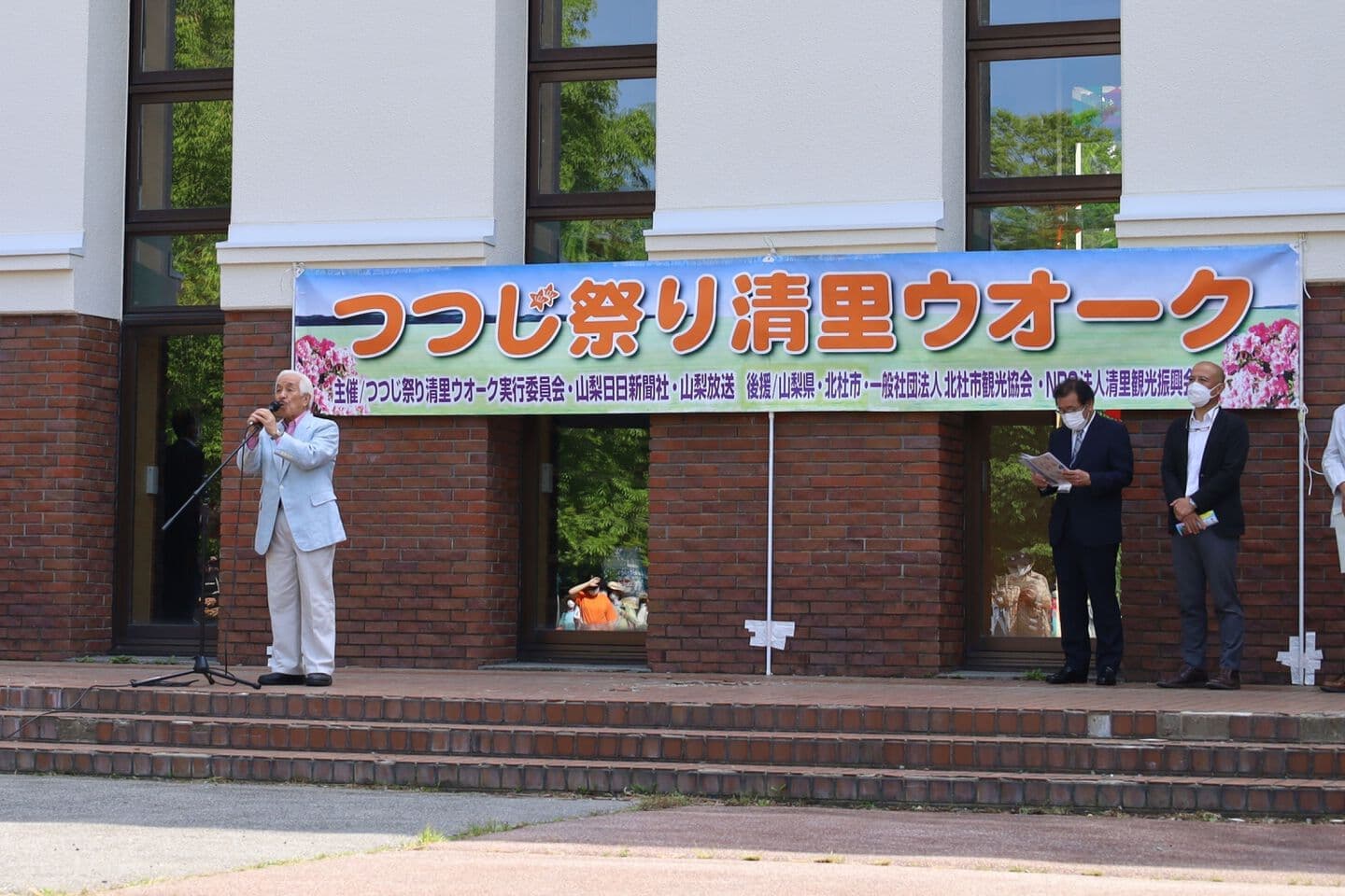 6月17日 「北杜市×THE NORTH FACE」包括連携事業のMOUNTAIN TAXIの運行が開始!出発式に出席し挨拶しました。