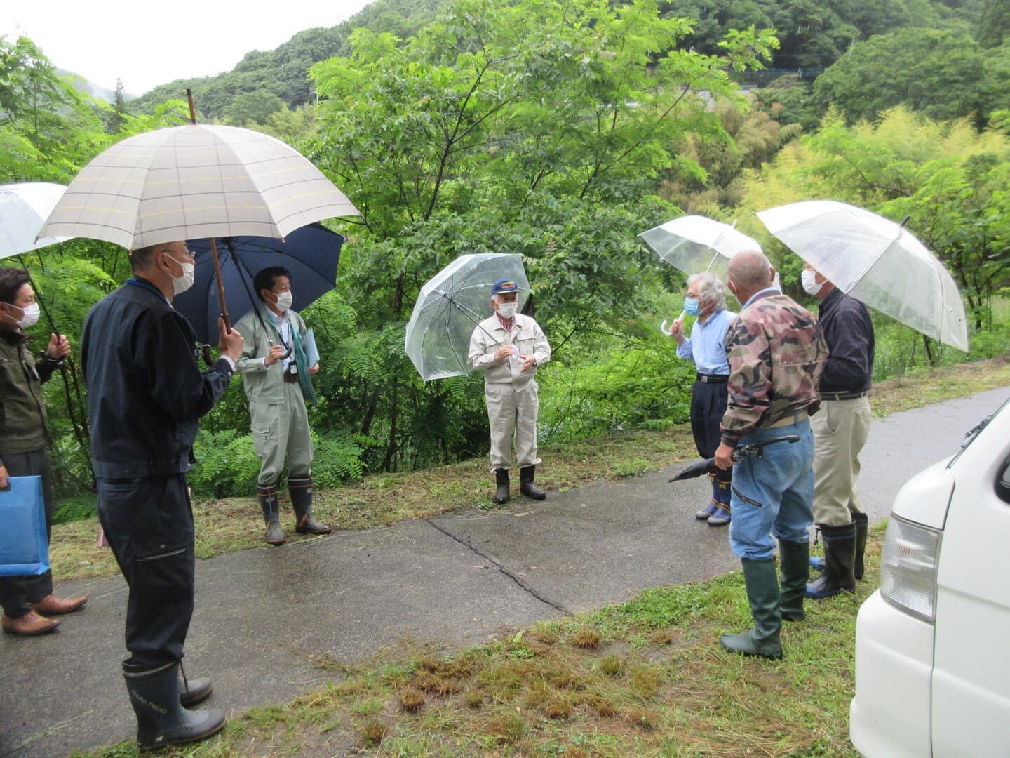 6月27日 高根町上黒沢地区 甲川改修要望の皆様と現地調査を行いました。