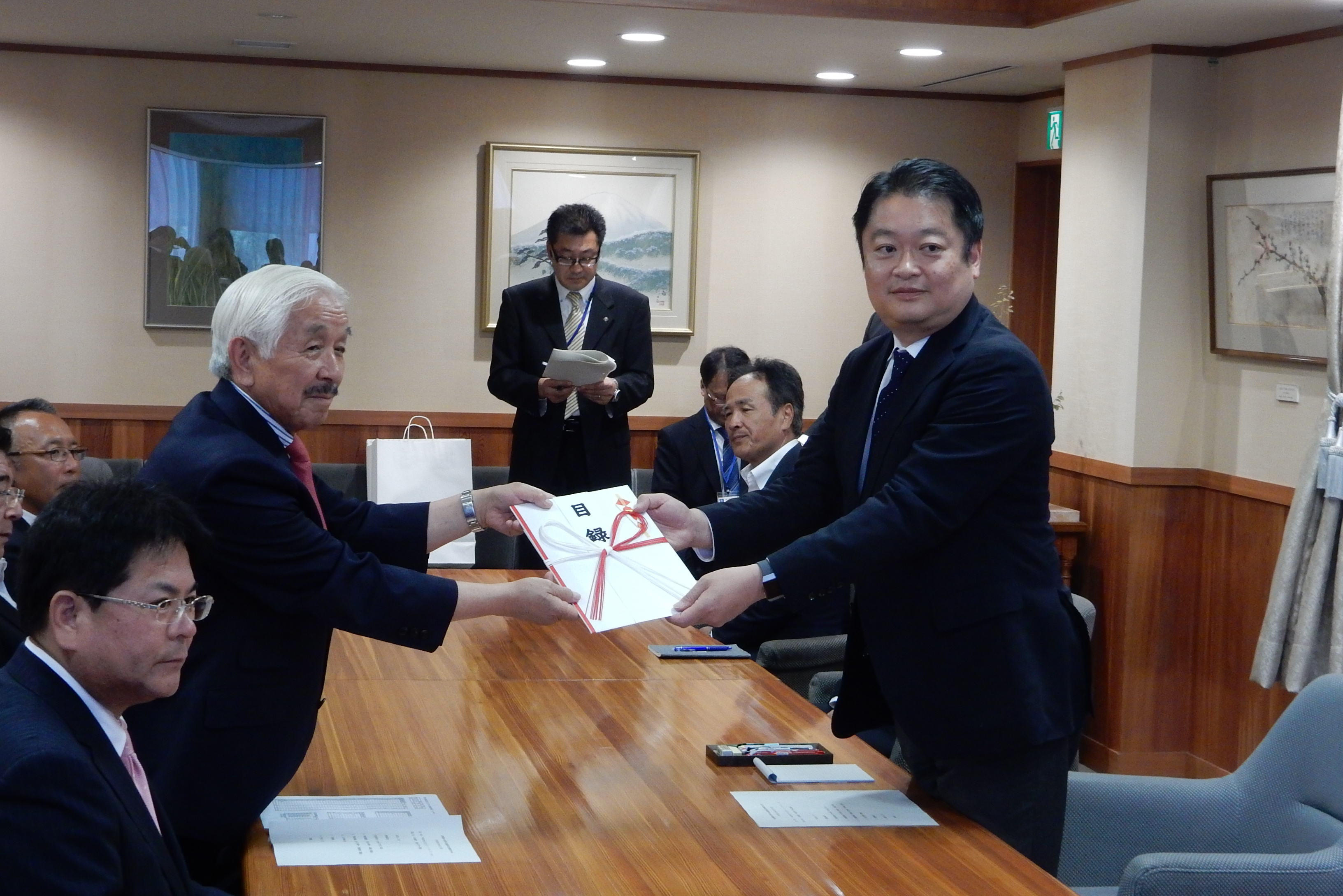 平成31年6月3日今年もMt.富士ヒルクライム参加費から3%を富士山の環境整備に役立ててもらうよう知事に贈呈しました。