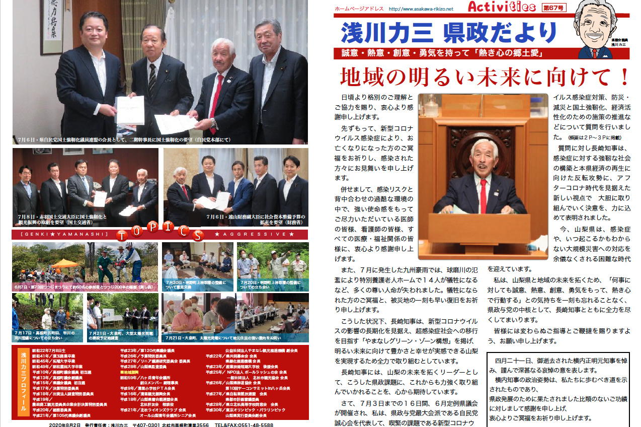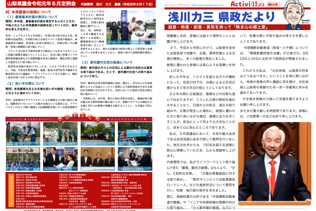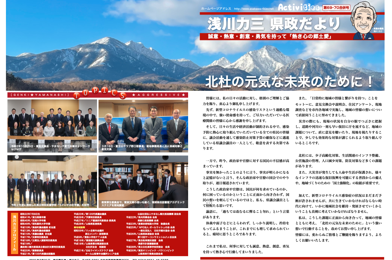 私は、これからも様々な機会を通して皆様のご意見をお伺いし、全ての市民の想いが実を結ぶ地域社会の実現を目指して、地域活性化や県勢進展のための施策の提案、推進に、誠心誠意、熱き心で取り組んでいくことをお約束します。