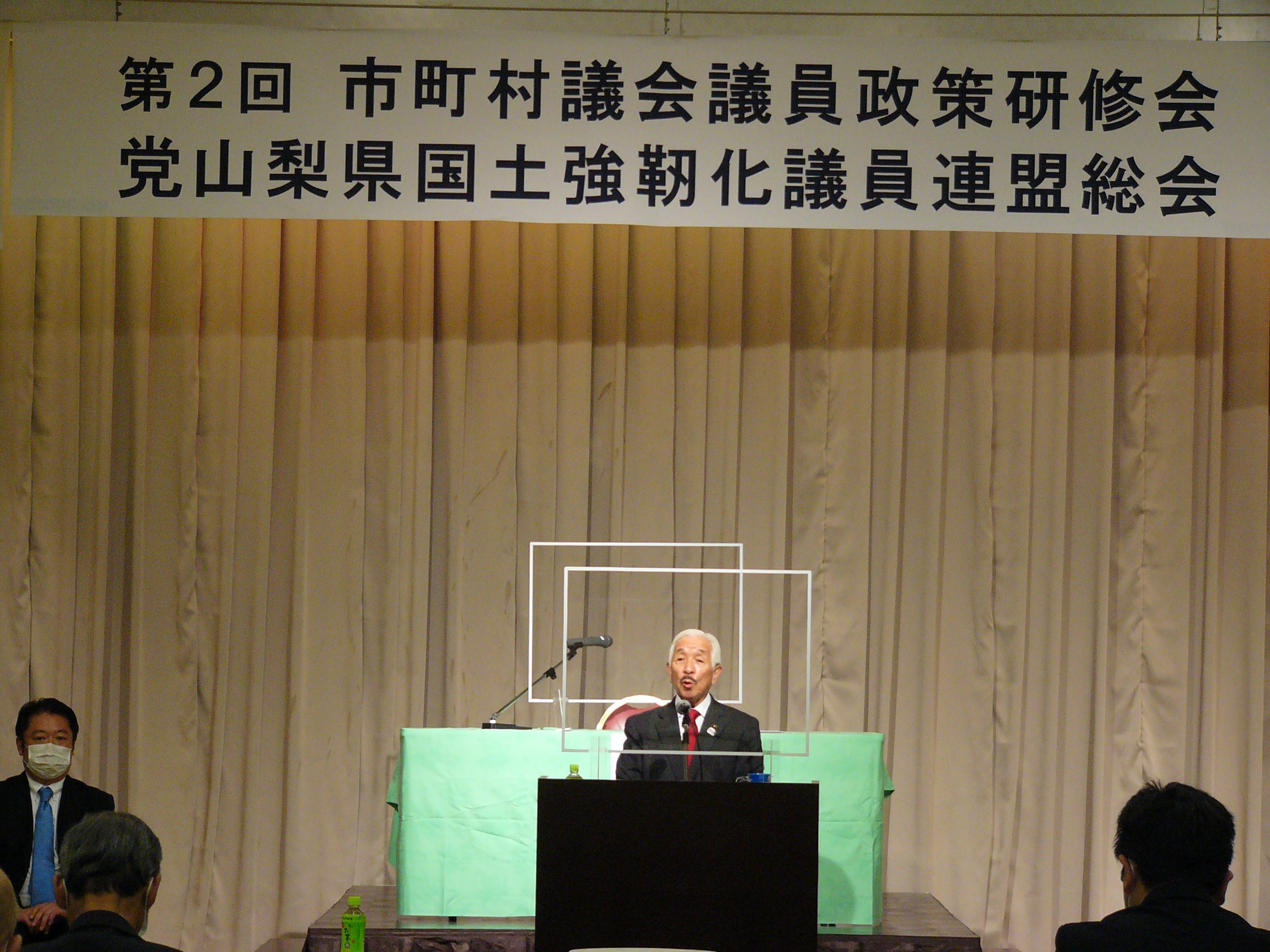 10月11日(日)に、私が会長を務める「自由民主党山梨県国土強靭化議員連盟」の総会を、多数の党支部連合会役員、所属市町村議会議員の参加を得て開催しました。