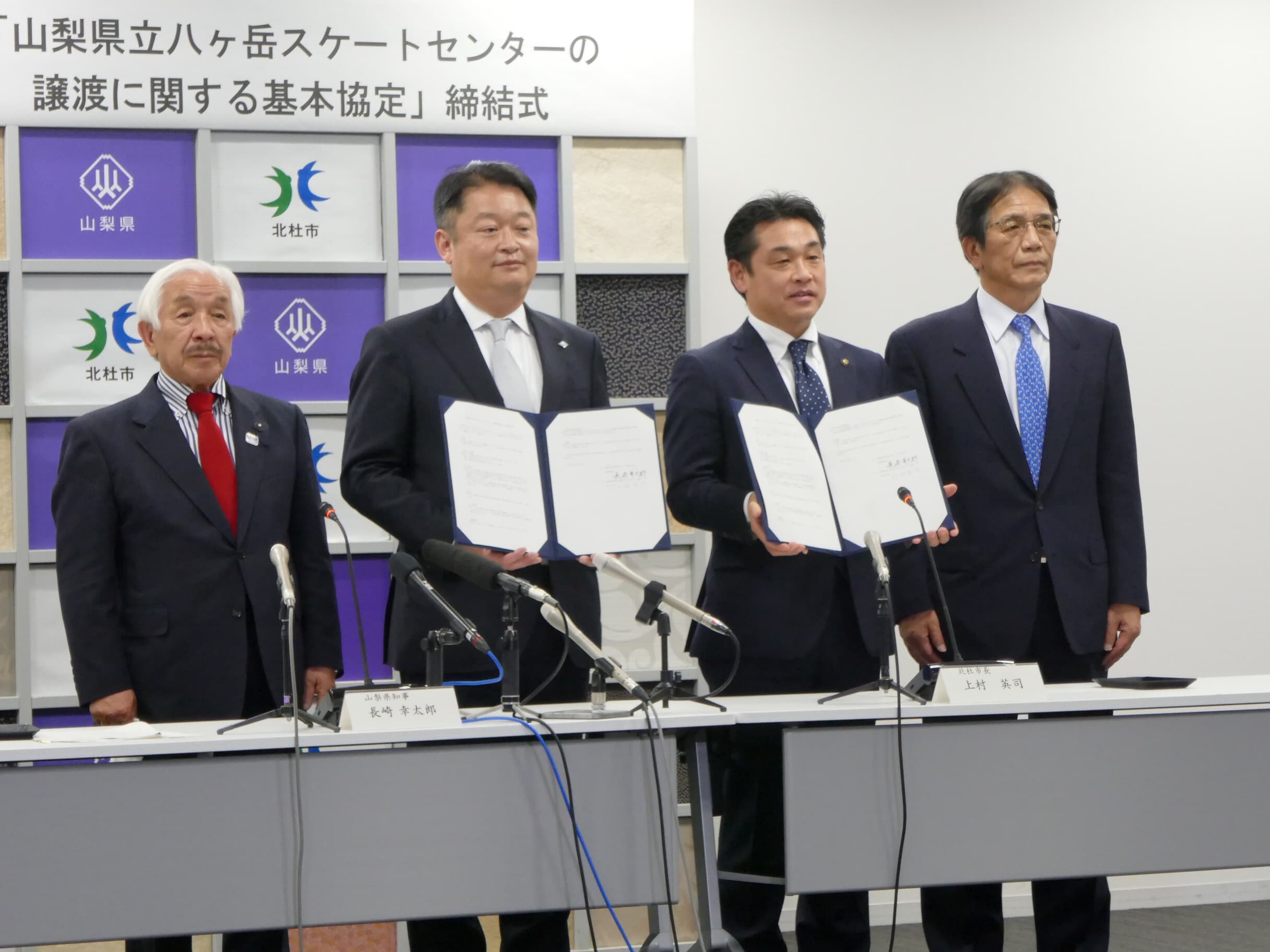 令和3年3月29日:県立八ヶ岳スケートセンターの譲渡に関する基本協定締結式