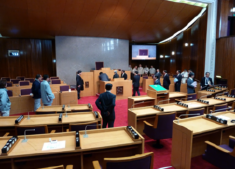 県議会でも県議会議員が議事堂に集まり、震災により犠牲となられた方々に対しまして、哀悼の意を表するため、発災時刻の午後2時46分に1分間の黙とうを捧げました。