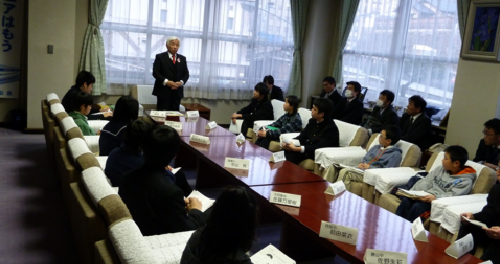 ○ 研修に先立ち、行われた講義を子どもたちが目を輝かせて聞き入る