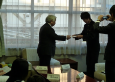 こうした地道な活動に対し、山梨県緑化推進機構の会長として、心から感謝の意を申し上げました。社員の皆様の気持ちに応えられるよう、有効に活用させていただきます。