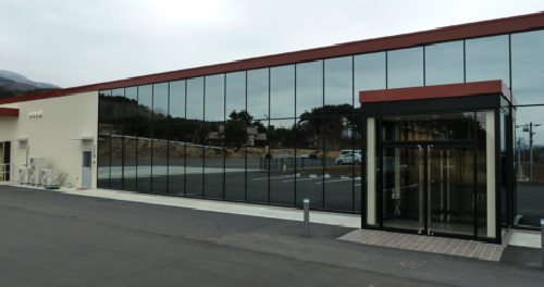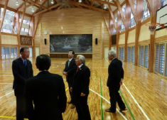 このたび、小菅村内に完成しました体育館の視察に行ってきました。この体育館は県産材と小菅村産の木材で建てられております。小菅村の木材は寒冷な気候のゆえ、成長が遅く、成木となるまでに多くの年月を要するとのことで、その分年幅の狭く、固くて良質な木材に成長することのことでした。