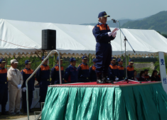 水害に対する訓練の一環として、地元水防団員及び関係機関の関係者ら約300名のご参加のもと、本番さながらの水防訓練が実施されました。こうした訓練の実施は、水害から県民の生命と財産を守るとともに、被害を最小限に食い止める上で、大変意義あるものであり、水防技術の向上はもとより、水害対策のための啓発としても大変重要な機会となりました。