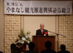 総会では、「おもてなしのやまなし観光振興条例」の推進をはじめ、戦略的観光・物産プロモーションの展開や、着地型旅行商品の企画等の各種事業が承認されました。当機構が、本県観光産業のさらなる活性化に向け、これまで以上に、重要な役割を果たしていかなければならないと思っております。