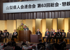 山梨を離れ首都圏でご活躍されている方々で構成される、山梨県人会連合会の第63回総会に出席して参りました。当日は、会員の皆様と親しくお話をさせていただき、皆様が「ふるさと山梨」への深い愛郷の念を持ちながら、それぞれのお立場で山梨を応援されていることを知る貴重な機会となりました。山梨県民はもとより、山梨を離れて暮らしている方々にとりましても、「緑豊かで美しい山梨」を誇りとしていただけることを目指し、これまで以上に尽力していくことを固く決意いたしました。