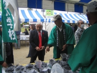 セレモニーのあと、私たち県議会議員もハッピを着て、山梨県のPRグッズを配布しました。