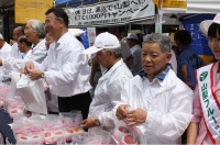 山梨活性化促進県議会員連盟 観光部会の事業として、山梨県農畜産物販売強化対策協議会・JA全農やまなしの販売促進事業と連携し、首都圏観光キャンペーンに参加しました。会場は東京都大田区の大森駅前にある「ダイシン百貨店」で桃の試食会や観光・イベントパンフレットなどを配布。当日は、14人の議員が参加し、桃をイメージしたピンクの法被や観光キャンペーン用のジャンパーなどを羽織り、2人一組となって交代で、百貨店を訪れたお客様に山梨を訪れていただいたり、山梨の果実を味わっていただけるよう、声を張り上げてPRしました。