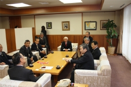 2020年に開催されるオリンピック・パラリンピックの立候補都市として、IOC理事会において東京都が選定されたことを受け、日本への招致活動の一環として、東京都議会招致議員連盟の代表者3名が来県され、県議会議長と知事に対し、協力要請を行いました。オリンピック・パラリンピックの日本への招致は、富士山世界文化遺産登録の効果も手伝い、魅力溢れる観光資源に恵まれた本県には、世界中から大勢の観光客が訪れることが予想されるため、本県への経済効果も計り知れないことをお伝えし、出来る限りの協力と支援を惜しまないことをお伝えいたしました。日本への招致を心から願っております。
