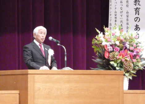 完成に7年を要した、映画「道~白磁の人~」山梨県完成披露試写会が開催されました。私自身、浅川兄弟と同じ旧高根町で生まれ育ち、韓国・忘憂里で眠る“浅川巧”への墓参を何度か行ったこともあり、本日の試写会をたいへん心待ちにしておりました。この映画を通じて、浅川巧の生き方と、朝鮮を深く愛したその志を感じ取ってきたいと願っております。思い返しますと、早くから浅川兄弟の足跡に着目され、「浅川兄弟を偲ぶ会」の初代会長を務め、浅川兄弟資料館の建設に尽力された元高根町長の故・大柴恒雄様をはじめ、「偲ぶ会」の初代事務局長を務められた清水九規様、当映画製作委員会の代表として大役を果たされた長坂紘司様、そのお父様で、浅川兄弟の功績の普及に尽力された故・長坂勉様、当映画製作委員会の設立に尽力された栗原信雄様など、浅川兄弟に魅せられた大勢の方々の熱意と努力が当映画製作の原動力となったことは言うまでもありません。そして若い世代の方々にもぜひご観賞いただき、国際舞台で活躍できる有望な人材となりますようご期待申し上げるとともに、映画「道~白磁の人~」が日韓友好の証として、末永く親しまれる映画となることを祈念しております。