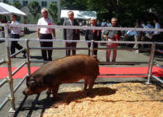 県の畜産試験場が7年の歳月をかけて開発した新系統の種豚が完成したため、その披露式典に出席して参りました。