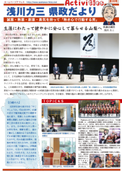 - 1月15日に浅川力三県政だよりを新聞折込にて北杜市全域に発行します。ぜひ、ご覧ください。