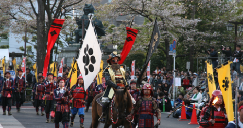 信玄公祭りのハイライト、「甲州軍団出陣」に、山梨県議会が本陣隊(武田太郎義信)として出陣しました。