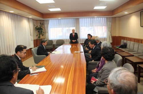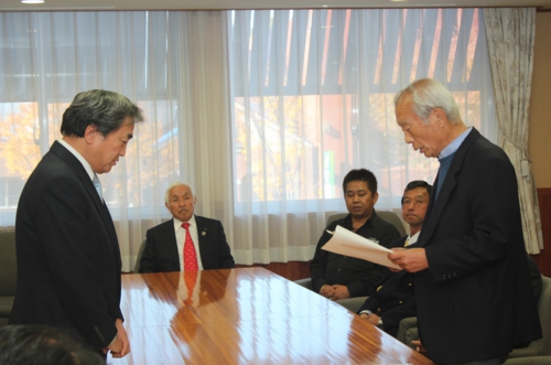 11月18日 県教育長室において、北杜高校の校長、教頭、PTA会長、同窓会長と共に、学校施設の整備要望を提出しました。