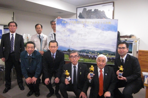 菜の花プロジェクトのパネルと菜種油を多大なご協力を頂いている農政部長へ贈呈いたしました。