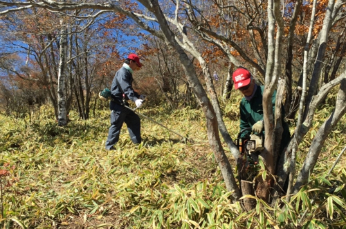 開催日:10月25日/昭和21年に始まった美し森でのつつじ祭りも68回を数え観光資源として重要な拠点です。保護育成のための草刈りや伐採を庁友会、ボランティア推進機構、高根・大泉の観光業者の皆さんと年2回のべ300人で行っています。