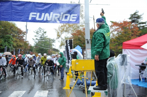台風18号関東直撃に関わらず2100名を超える皆様が前日受付され、グランフォンド八ケ岳への期待と人気の高さを改めて認識しました。また、悪天候にも関わらず300名を超える地域ボランティアの皆様のご協力を頂きました。心より御礼申し上げます。