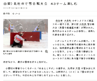 第1回山梨県小学生雪合戦大会(3月1日)ならびに